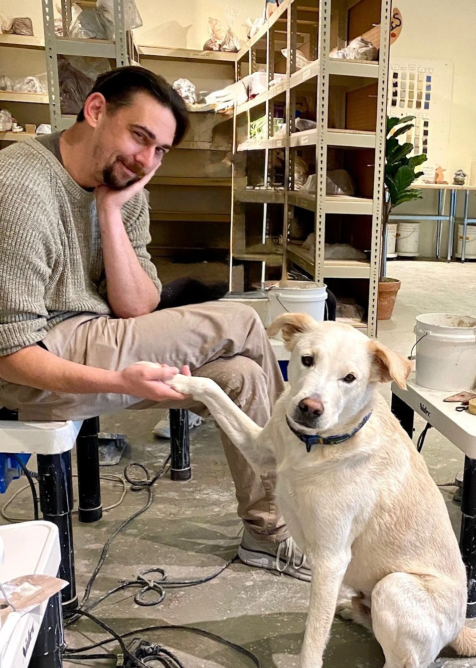 Rob Sheldon (and Steve)INSTRUCTOR Rob Sheldon is a San Marcos potter and current resident at Eye of the Dog Art Center. He earned his BFA from Alfred University in ceramics. Working in clay for over 20 years, he currently finds his work divided by three different modes; wheel throwing, hand building and slip casting. Going on ten years of teaching ceramics, he continues to love sharing the possibilities of this medium to curious minds. Rob teaches Beginner and Intermediate 6 Week Wheel classes at Mud Studio.